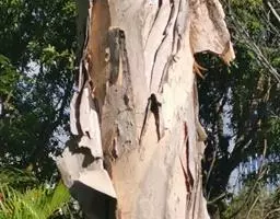 桉桃金娘科桉属密荫大乔木,高约20米;树皮深褐色,厚2厘米,有不规则的斜裂沟;嫩枝有棱。幼态叶对生,…