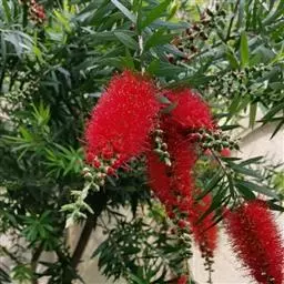 红千层是桃金娘科红千层属的常绿小乔木植物。红千层树皮坚硬,灰褐色,嫩枝有棱,初时有长丝毛,…