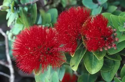 新西兰圣诞树,桃金娘科铁心木属植物,拉丁名 Metrosideros excelsa,英文名New Zealand Christmas Tree(新西兰圣诞树),土著毛利人起的土名 Pohutukawa。