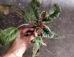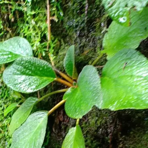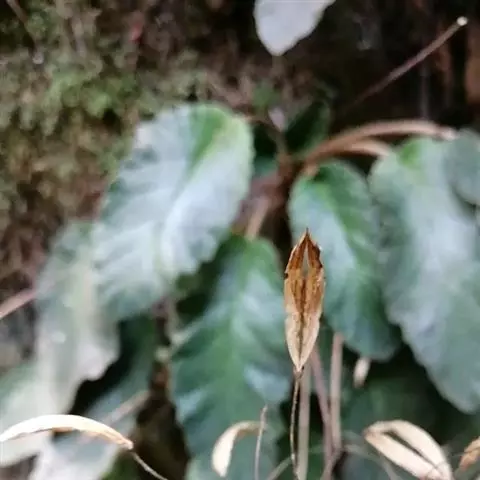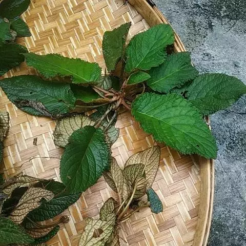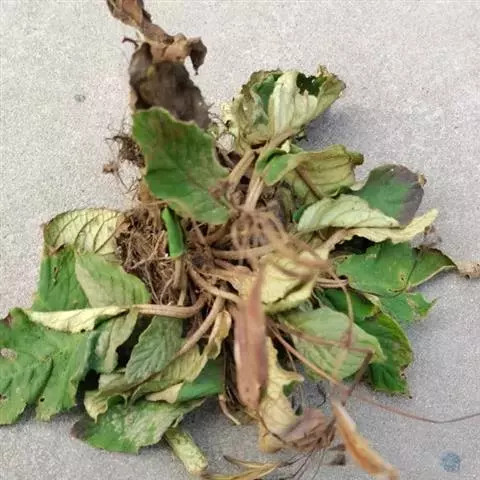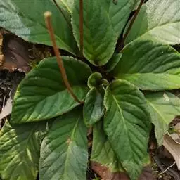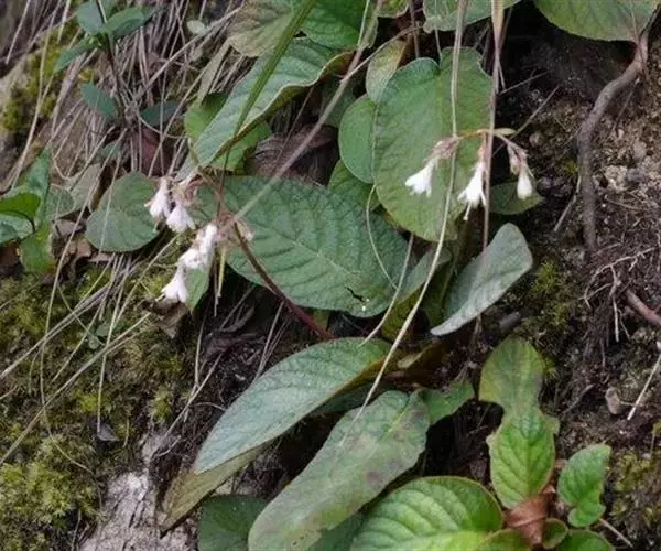 多年生草本。根状茎长2-7厘米,直径5-13毫米。叶丛生,具长柄;叶片椭圆形或卵状椭圆形,长6-12厘米,宽3-8厘米,顶端钝或圆形,基部浅心形,偏斜或楔形,边缘具小锯齿或全缘,上面密被短柔毛,下面密被褐色绵毛,侧脉每边6-8条,不明显成网状;叶柄长2-8厘米,密被褐色绵毛。