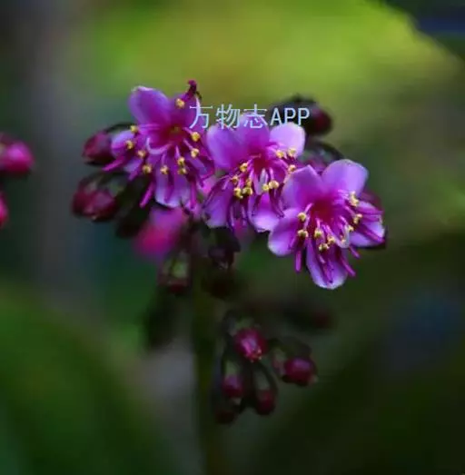 蝎尾状聚伞花序腋生,具长总梗(即花葶),长24-30厘米,无毛,钝四棱形;苞片极小,早落;花梗具棱,棱上具狭翅,多少被糠秕,长8-10毫米,有时具节;花萼漏斗状杯形,无毛,具5棱,棱上具皱波状狭翅,顶端平截,萼片极短,三角状半圆形,顶端点尖,着生于翅顶端;花瓣暗红色,广倒卵形,1侧偏斜,几成菱形,顶端平,斜,具小尖头,长约10毫米,宽约6毫米;雄蕊长者长约18毫米,花药长约11毫米,药隔下延成长约1毫米的短柄,柄基部前方具2小瘤,后方微具三角形短距,短者长12-14毫米,花药长7-8毫米,基部具2小疣,药隔下延成短距;子房卵形,顶端具膜质冠,5裂,裂片边缘具缘毛。