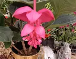 虎颜花(学名:Tigridiopalma magnifica C. Chen)属于野牡丹科虎颜花属,多年生常绿草本,茎极短,被红色粗硬毛,具粗短的根状茎,略木质化;叶基生,叶片膜质,心形,顶端近圆形,边缘具细齿,基部心形,长宽20-30厘米或更大,叶面无毛,叶背被红色绒毛;叶柄圆柱形,肉质,被红色粗硬毛;蝎尾状聚伞花序腋生,花瓣5,暗红色,蒴果漏斗状杯形,花期约11月下旬,果期3-5月。