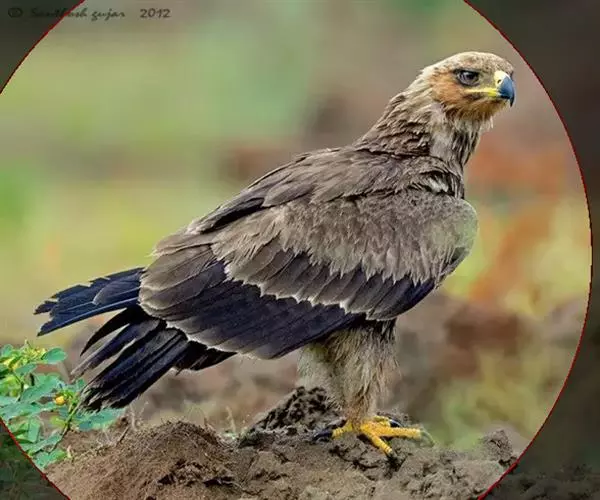 虹膜红褐色,幼鸟为暗褐色,嘴黑褐色,嘴基铅蓝灰色,蜡膜和趾黄色,爪黑色。