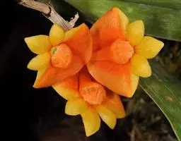 独角石斛,Dendrobium unicum,兰科石斛属植物。花瓣橙黄色,唇瓣反转似犀牛角,…