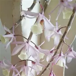 重唇石斛:茎下垂,圆柱形或有时从基部上方逐渐变粗,具少数至多数节。叶薄革质,狭长圆形或长圆状披针形。…