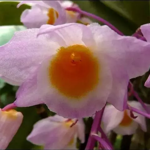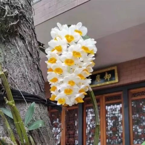 石斛(学名:Dendrobium nobile Lindl),又名仙斛兰韵、不死草、还魂草、紫萦仙株、吊兰、林兰、禁生、金钗花等。茎直立,肉质状肥厚,稍扁的圆柱形,长10~60厘米,粗达1.3厘米。药用植物,性味甘淡微咸,寒,归胃、肾,肺经。益胃生津,滋阴清热。用于阴伤津亏,口干烦渴,食少干呕,病后虚热,目暗不明。石斛花姿优雅,玲珑可爱,花色鲜艳,气味芳香,被喻为“四大观赏洋花”之一。