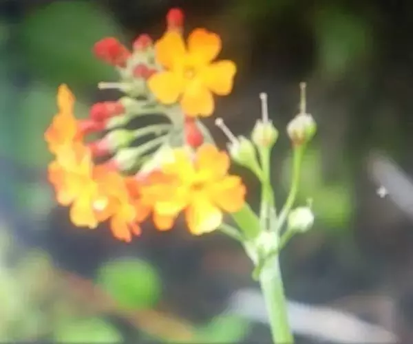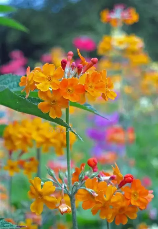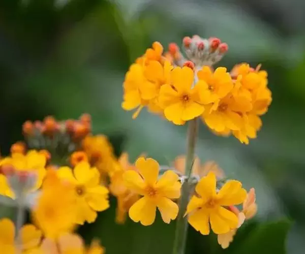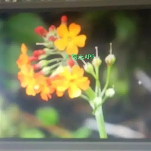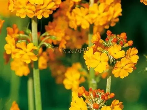 花葶粗壮,高20-70厘米,节上和顶端被乳黄色粉,具伞形花序5-7轮,每轮具(4)8-16花;苞片线形,通常稍长于花梗;花梗长1.3-2.5厘米 ,微被粉;花萼钟状,长5-9.5毫米,分裂达中部或略过之,裂片披针形,先端渐尖成钻状,外面微被粉,内面密被乳黄色粉;花未开放时呈深橙红色,开后为深橙黄色,冠檐直径达2厘米,裂片长圆伏倒卵形,先端微凹,长花柱花:冠筒长10-12毫米,雄蕊着生处距冠筒基部约5毫米,花柱长约8.5毫米;短花柱花:花冠筒长14-15毫米,雄蕊距冠筒基部约10毫米着生,花柱长约5毫米。蒴果近球形,约与花萼等长。花期6-7月。