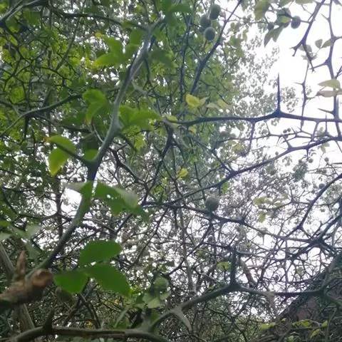 香橼为小乔木或灌木状;株高达5米;幼枝、芽及花蕾均暗紫红色;茎枝多刺,长达4厘米;单叶,…