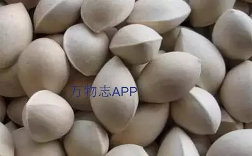 椭圆形移动图册,长1.5~2.5cm,宽1~2cm,厚约1cm。表面黄白色或淡黄棕色,平滑坚硬,一端稍尖,另端钝,边缘有2~3条棱线,中种皮(壳)质硬。内种皮膜质。一端淡棕色,另端金黄色。种仁粉性,中间具小芯。味甘、微苦。