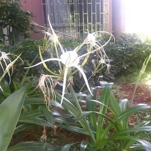 长筒石蒜草本,地生。鳞茎卵球形;叶披针形;伞形花序,有花5-7朵,花白色;花被裂片腹面稍有淡红色条纹,…