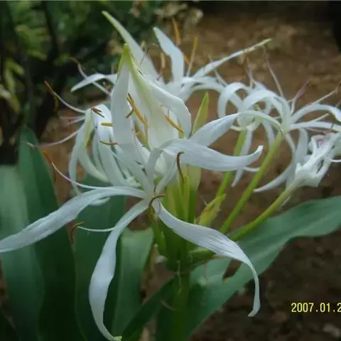 叶片宽度一般不超过50毫米,很少达到90毫米的。花的形状有细瓣的, 也有宽瓣的,象喇叭一样。里侧的花瓣一般比外侧的花瓣要宽。花的颜色一般是桔色的,有黄白色的内芯。当然也有从黄白色系到暗红色系之间的颜色的花。非常淡的和非常深的颜色的花是比较稀少的。开花时一个花苞里一般有20朵左右的花,也有达到40朵的。浆果中的种子有1-20颗,一般不到10颗。