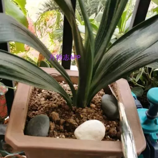君子兰家族中的缟艺彩兰,缟艺君子兰在国内国外都是君子兰家庭中的一位骄子,其叶面有明显的绿、黄、白、浅绿、墨绿、灰色等色彩分布,绿、黄、白分明,光亮迷人,有立体感、透明感、清爽感,具有极高的观赏价值。