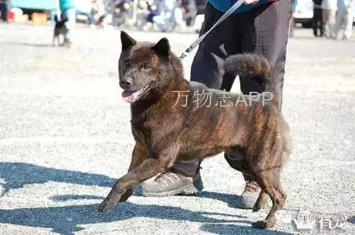 肌肉强健,勇敢而敏捷,被认为是天生的猎手,可信赖的家庭守护者。头部呈中等长度的楔形,两耳间宽阔,向吻端逐渐变狭窄。颅骨宽阔,接近平坦,有中沟;颊部发育良好。吻部长度约等于颅骨长度,从侧面看颅顶和吻部平行,厚度中等。眼下饱满,鼻梁直。下颚强健但不凸出,嘴唇黑色,闭合紧密。牙齿剪状咬合,水平咬合也可接受。鼻子一般纯黑色,不凸出吻部。眼睛相对较小,黑棕色,眼缘黑色,略呈三角形,但比秋田犬圆。耳朵强直,相对与头部比较大,三角形,耳根位于颅骨外侧,不太低。颈部中等长度,肌肉厚实。胸部深而宽阔。背线从肩隆处向下倾斜,然后变为水平;背部肌肉发育良好,腰部肌肉健壮,较短。肋部中度扩张。前肢直,肌肉丰满,骨量充足;上臂靠近肋部但依然灵活。后肢骨量重,肌肉发达,非常有力。足部中等长度,圆形;足垫厚;趾甲结实,黑色。尾巴尾跟高,镰刀状尾巴最理想,卷曲在背上的也可以接受。在狩猎时有时尾巴向后伸直。披毛双层,中等长度;外层毛粗糙,直;内层毛厚实,柔软,密实。头部、腿部、耳朵毛发比身体上毛发稍短,尾巴上的毛发有点长。披毛呈虎斑纹状,因此外号被称作“老虎”(Tora),任何颜色斑纹都同样被接受。幼犬通常是黑色绒毛,成年犬才呈现斑纹,但有的直到5岁才完全显现。边缘清晰的斑纹是最好的。在腿部、胸前、前肢之间、腹下出现些白色是可接受的,但腿部的白色部位不能超过膝关节。身体上不能混杂白色毛发。