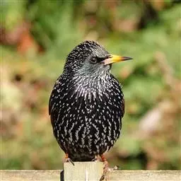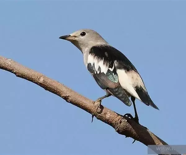 斑椋鸟:是中等体型的黑白色椋鸟,体长24厘米。头顶、头侧、翼斑、腰及腹部白色,喉、胸及上体余部黑色,…
