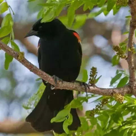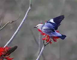 黑冠椋鸟:中等体型的椋鸟,体长21厘米。雄鸟前头为黑色并具金属光泽;头顶、颈项和羽冠亦为黑色;翅及翅上覆羽黑色;尾羽褐色,具白色端斑;上体灰色;下体淡黄褐色。雌鸟形态与雄鸟相似,但羽冠较雄鸟为短。虹膜蓝白或乳黄色;嘴峰铅绿色;跗蹠及爪柠檬黄色。头具黑色羽冠,与其他椋鸟易于区别。主要栖息于开阔落叶阔叶林和灌木林中以及多营巢于树洞中或其他洞穴内。属群鸟共栖。常4-8只结小群活动。鸣声清脆响亮。食物有果实和浆果,偶食花蜜和小型昆虫。分布于印度、中国云南耿马。常见于印度城镇、村庄及铁路沿线。偶见于中国云南西南部和西藏东南部。