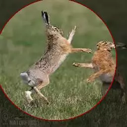野兔是独自或成对生活的,一般都是害羞的动物,并会在春天改变其行为模式。雄兔会在白天互相追逐,来显示自己的优越性。而雌兔则会“拳击”雄兔,目的似乎是表示它们未有准备交配,或是测试雄兔的决心 。(《野兔雪地全速飞奔》相册参考资料 )