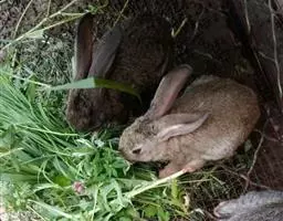 野兔以野草、树叶等植物为食,人工养殖饲料来源广泛、各种牧草、青菜、秸秆等均可喂养,一般早、中餐喂青饲料和多汁饲料,晚上喂青饲料和少量颗粒饲料。