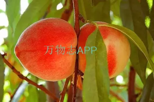 桃(学名:Amygdalus persica L.):蔷薇科、桃属植物。落叶小乔木;叶为窄椭圆形至披针形,长15厘米,宽4厘米,先端成长而细的尖端,边缘有细齿,暗绿色有光泽,叶基具有蜜腺;树皮暗灰色,随年龄增长出现裂缝;花单生,从淡至深粉红或红色,有时为白色,有短柄,直径4厘米,早春开花;近球形核果,表面有毛茸,肉质可食,为橙黄色泛红色,直径7.5厘米,有带深麻点和沟纹的核,内含白色种子。