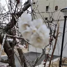 花半重瓣,白色,有时一枝上之花兼有红色和白色,或白花而有红色条纹。