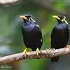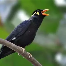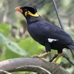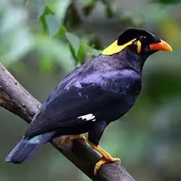 金冠树八哥为椋鸟科树八哥属的鸟类。体长约23厘米,闪辉黑色。特征为具翼斑及颏黄色,脸颊裸露皮肤粉黄色。…