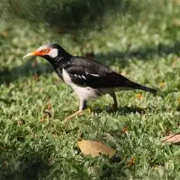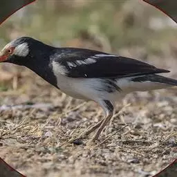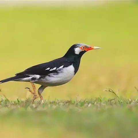斑椋鸟:是中等体型的黑白色椋鸟,体长24厘米。头顶、头侧、翼斑、腰及腹部白色,喉、胸及上体余部黑色,…