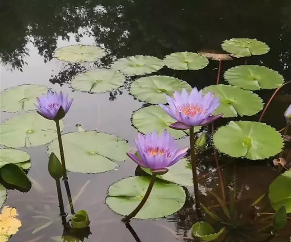 选用无孔营养钵,高30厘米,口径40厘米,栽种方法及营养土如缸载,填土高度在25厘米左右,栽种完成后沉入水池,水池水位控制在刚刚淹没营养钵为宜,随之生长逐渐增加水位。此方法优点在于越冬容易,只需冬季增高水位,使睡莲顶芽保持在冰层以下即可越冬,缺点是管理时必须进入水池,略感不变。