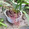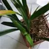 准备好兰盆及植料后,将兰株倒拿(根在上,叶在下)放于水龙头下以慢水冲洗,但水压切忌过强,以免伤兰根及叶子。用拇指和食指抓住兰头,小指抵住盆缘,用竹筷将根固定,当放入盆内时,尽量不要让根接触到盆壁。将豆粒大的混合石砾倒入盆底至三分之一处。然后倒入中粒植料至五分之四处,填实和尽量不要留下空间。将竹筷拔出,并摇实盆中植料。填实植料后,再用大粒植料埴入至距盆缘1.5厘米处。最后再倒入豆粒大植料,以将假鳞茎全部埋入土中为度,然后充分摇实。用压土工具轻压植料,并将表面弄平。种植完毕后,植料在盆中以中央稍高为好。