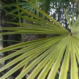 蒲葵 R. Br. ex Mart.),棕榈科蒲葵属木本植物。叶为扇形,两面均为绿色,…