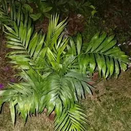 三药槟榔属于丛生状生长的植株。一般经过4-5年的栽培,母株周围便会萌发蘖芽,这些蘖芽再经1年及其以上的生长,基部能长出生活根。莳养者便可根据植株的长势和繁殖需要,将其全株挖起,别去附着土,露出所有根系,再按植株生长的缝隙,用锋利快刀进行切割,分成若干小株丛,切口涂抹硫磺粉或洁净草木灰,对刀口进行消毒处理,最后进行分株苗栽培,成活后便是一棵完整的植株。三药槟榔分株,宜在植株生长旺盛的4-6月进行。一般华南地区这时的气温,大都能稳定在25℃以上,植株分切栽培后,能迅速生根萌发新芽,只要操作得法,精心栽培,精心管理,植株比原来生长更好。分株苗的栽培,小苗用小盆,2-3米以上的大株,要用特大号瓷质陶盆,栽培时,可用培养土,栽好后第一次把水浇透,以后每天多次向叶片进行雾状喷水,这样既能减少水分蒸发,又能滋润盆土,促进分株苗尽快成活。