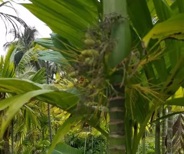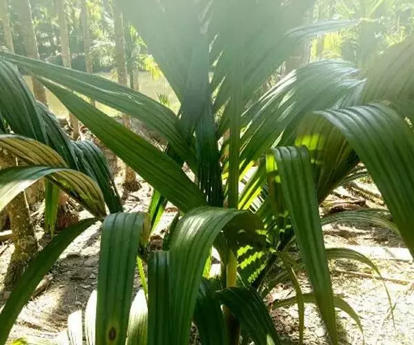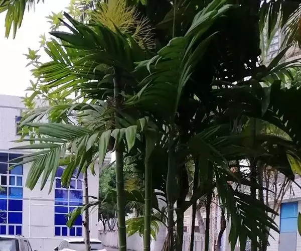 三药槟榔是一种热带或南亚热带繁茂生长的绿阴树种,茎干挺拔强健,枝叶常年青翠,形若翠竹,耐阴性强,挂果期长。既有南国热带风情的优美叶态,又有橙黄、赭红、累累果实的内在情调,是一种极为珍贵的观叶、观花、观果植物。