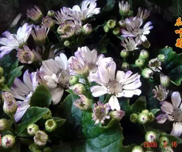 瓜叶菊为温室花卉,盆载作为室内陈设,其花期早,在寒冬开花尤为珍贵,花色丰富鲜艳,特别是蓝色花,闪着天鹅绒般的光泽,幽雅动人。