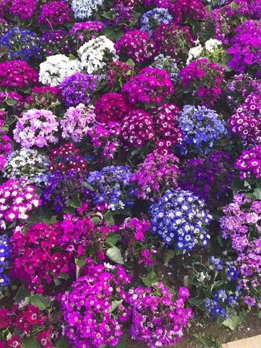瓜叶菊是冬春时节主要的观赏植物之一。其花朵鲜艳,可作花坛栽植或盆栽布置于庭廊过道,给人以清新宜人的感觉。