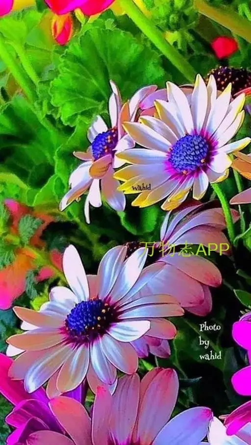 小花紫红色,淡蓝色,粉红色或近白色;舌片开展,长椭圆形,长2.5-3.5厘米,宽1-1.5厘米,顶端具3小齿;管状花黄色,长约6毫米。瘦果长圆形,长约1.5毫米,具棱,初时被毛,后变无毛。冠毛白色,长4-5毫米。花果期3-7月。有紫色、紫白色、紫色,紫白色比较常见。