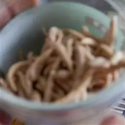2、将切面从中间切断,打散,切忌不要让切面成一陀,要像头发干燥的时候一样!