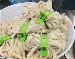 1、面: 提前和好面(饧1小时最好),比煮面条的而稍硬即可.(或买机器, 要细的那种)。