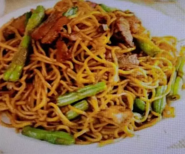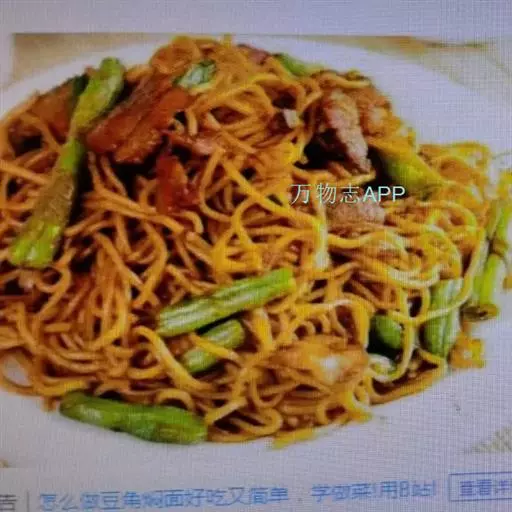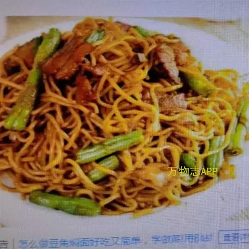 手工面(或碱面)猪肉、豆角、青椒,花生油、盐、鸡精、味精、蒜蓉、香油、酱油。