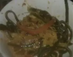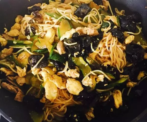 5、水基本没有后关火,然后把面和菜翻匀就可以了