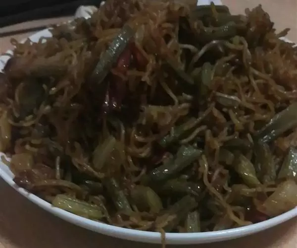 焖面(Braised String Bean with Noodle),是中国中部和北部地区的特色传统面食小吃,流行于山西,陕西,河南,河北,北京、天津、内蒙古,辽宁,安徽,湖北等长江以北大部分地区,又称为蒸面、卤面、炉面、垆面、烀面、糊面。主料是面粉,配料主要是豆角、豆芽和猪肉。其他随自己喜好而加。可以加入蘑菇,香菇,土豆丁,也很好吃,有养心益肾、健脾厚肠、除热止渴的功效。