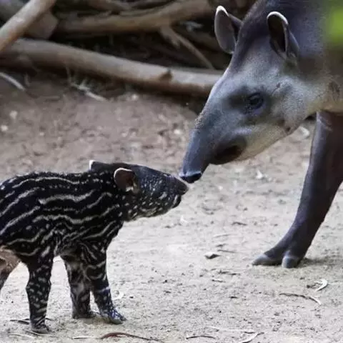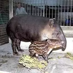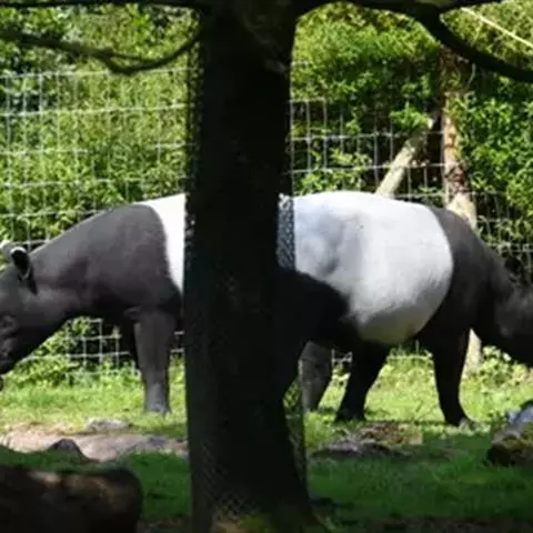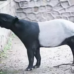 亚洲貘:亦称马来貘,是貘类中最大的一种,体长为1.8-2.5米,肩高90-120厘米,尾长5-10…