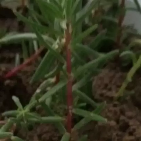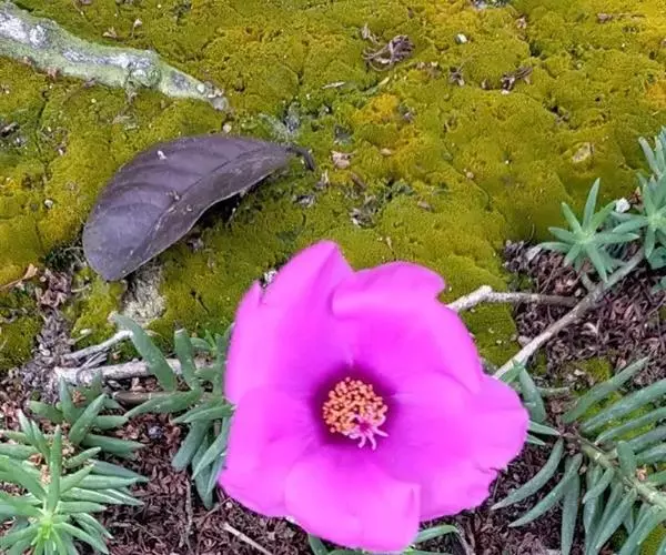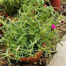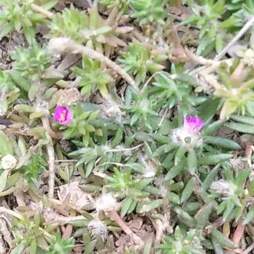 大花马齿苋一年生草本,高10-30厘米。茎平卧或斜升,紫红色,多分枝,节上丛生毛。叶密集枝端,较下的叶分开,不规则互生,叶片细圆柱形,有时微弯,长1-2.5厘米,直径2-3毫米,顶端圆钝,无毛;叶柄极短或近无柄,叶腋常生一撮白色长柔毛。
