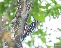 大斑啄木鸟隶属鸟纲鴷形目啄木鸟科。雄鸟头顶黑色,枕部红色,眼先、颊部和耳羽白色,颈部污白色,…