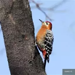 棕腹啄木鸟为啄木鸟科,啄木鸟属是中等体型的鸟类,体长约20厘米。头顶部具红色斑带。脚强健,有趾4个,…