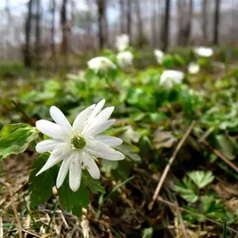 花葶2~6,有疏柔毛或无毛;苞片约5,无柄,不等大,菱形或倒卵形,三浅裂或三深裂; 伞辐2~5,长2-5厘米,有疏柔毛或无毛;萼片5~6 ,白色或带粉红色,倒卵形或狭倒卵形,长1~1.8厘米,宽5~11毫米,顶端圆形或钝,无毛;雄蕊长约5毫米,花药狭椭圆形;心皮4~16,无毛。