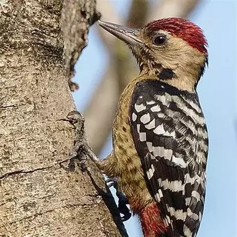 小斑啄木鸟,是啄木鸟科、啄木鸟属的小型鸟类,体长14-18厘米。额和颊白色,头顶雄鸟红色,雌鸟黑色。…