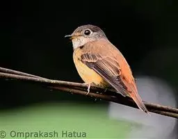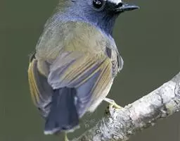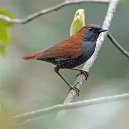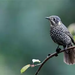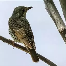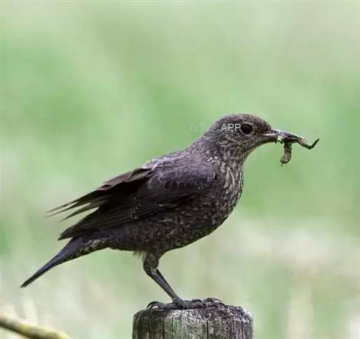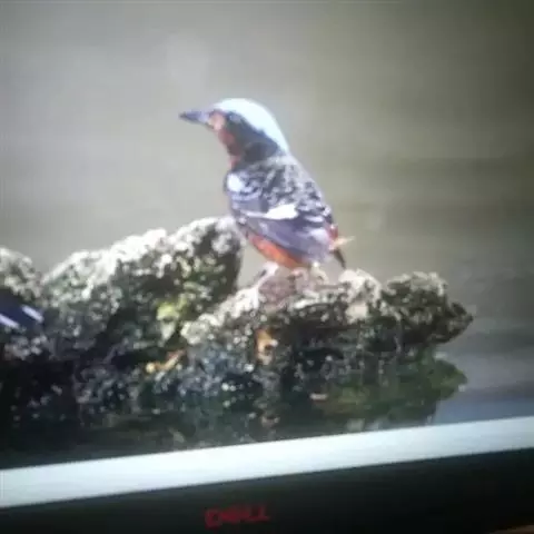 雄性幼鸟(采自8月间) 上体淡蓝,自额至上背各羽端部具有棕白色点斑,并缘以黑端;下背和腰各羽均具白端,并贯以黑斑;翅上各羽、尾上覆羽以及尾羽均具棕或棕白色羽端。下体与雌性成鸟的秋羽略同,但下腹或全部或仅中央为棕白色而微具黑斑。虹膜暗褐色,嘴、脚黑色。