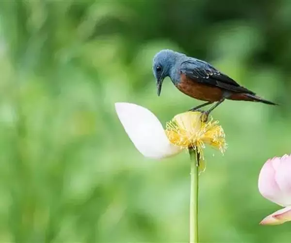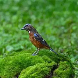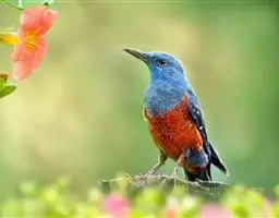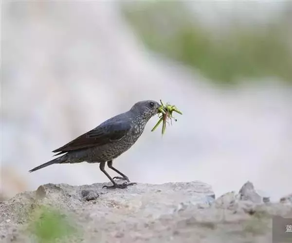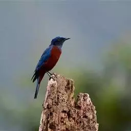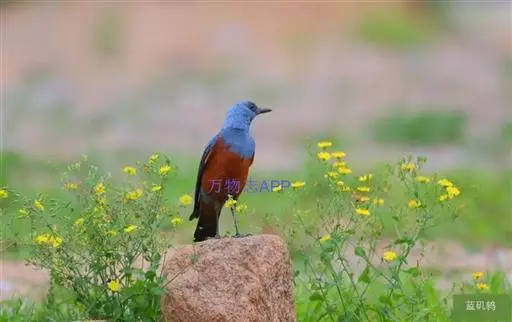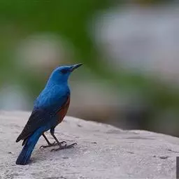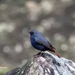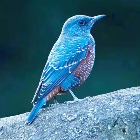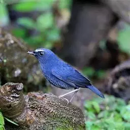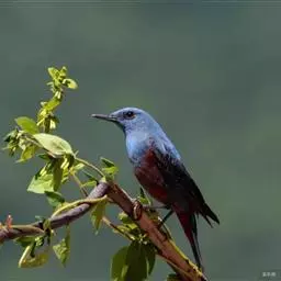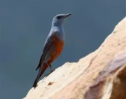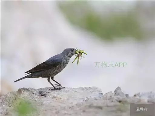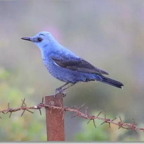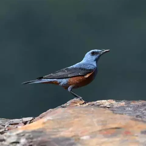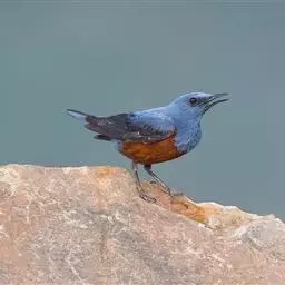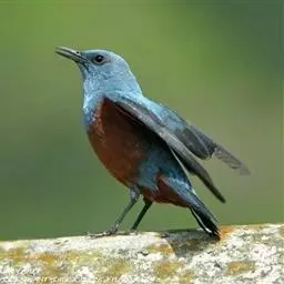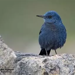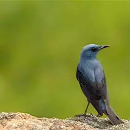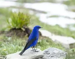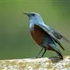 蓝矶鸫(学名:Monticola solitarius)是中等体型的青石灰色矶鸫,雄鸟上体几乎纯蓝色,两翅和尾近黑色;下体前蓝后栗红色。雌鸟上体蓝灰色,翅和尾亦呈黑色;下体棕白,各羽缀以黑色波状斑。夏季时常栖息于多岩石的山地或海岸上。冬季时南迁,偶见于城墙、古塔、废墟等处。它们取食或由高处直落地上捕取,或骤然飞出在空中捕食飞虫。雄鸟在繁殖期中善于鸣叫,鸣声富有音韵,十分动听,繁殖期在每年的4-7月,巢置于山腰的岩隙间,形似碗状。巢基以苔藓、枝条、树皮等所造成,内垫以细草,须根等。每窝产4枚卵,淡蓝色,有时在钝端处缀以红褐色细点。主要以昆虫为食,如蝼蛄、蝗虫等,也吃蜘蛛。分布广泛,为留鸟及候鸟,见于欧亚大陆、中国、菲律宾、东南亚、马来半岛、苏门答腊及婆罗洲。是马耳他的国鸟