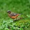 雄性成鸟(夏羽) 上体自额至上背褐灰,隐约具有黑斑;下背至尾上覆羽灰蓝,各羽具白端及黑褐色次端斑;两翅和尾与雄鸟相似,但较苍淡,翅上的覆羽和飞羽均缀以白缘;眼先污白;颊和耳羽暗褐,而缀以白色细点。颏和喉及喉侧等均白或棕白色,各羽均缘以圈状黑斑;胸以下略同,但这些圈状斑却转为横斑;尾下覆羽棕色更著。 喉的中央有时并无斑杂,但此部并不成为一个块斑状。