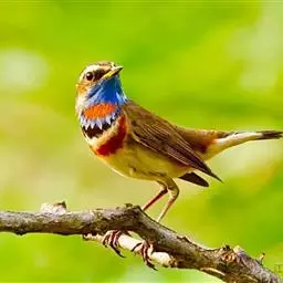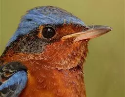 雄性成鸟(夏羽) 上体自额至尾上覆羽,头和颈的两侧,下体自颏至胸等部均辉蓝色;眼先近黑;翅上的小覆羽蓝色,余羽均黑褐,而外狭缘以蓝色,大覆羽和次级飞羽大多微具白端;尾羽黑,羽缘带蓝。下体自胸部以下纯栗红色;腋羽亦同色。至秋。自头顶至上背各羽的端部转为黑褐色,并贯以黑褐色横斑;下背至尾上覆羽,黑斑较微,而具棕白色羽端;翅上的内侧覆羽与下背同色,余羽黑褐,而具明显的棕白色羽端。下体自颏至胸均蓝,各羽端部棕白,并具黑褐色次端斑;后面栗红色各羽均具棕白或白色羽端,并大都更贯以黑褐色次端斑,有的羽还带些蓝色。