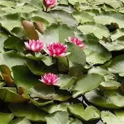 红花睡莲,多年生浮水植物。叶浮于水面,卵形,革质,表面绿色,背面紫红色,幼叶红色,花昼开夜合,浮于…