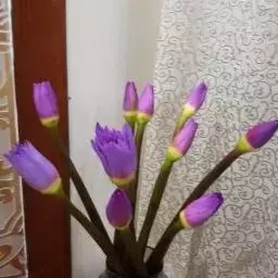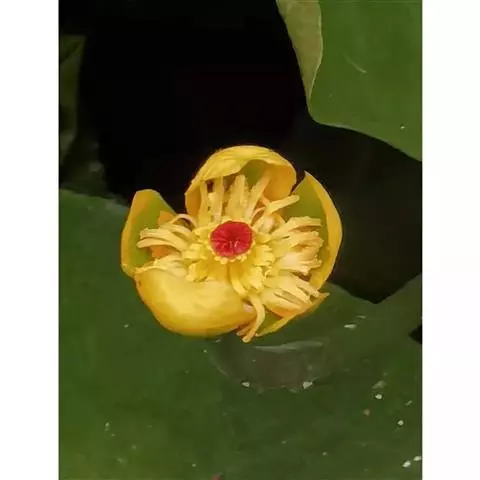 芡实(学名:Euryale ferox Salisb. ex Konig et Sims):睡莲科芡属一年生水生草本植物。沉水叶箭形或椭圆肾形,浮水叶革质,椭圆肾形至圆形,叶柄及花梗粗壮,花内面紫色;萼片披针形,花瓣紫红色矩圆披针形或披针形,浆果球形,污紫红色,种子球形,黑色。7-8月开花,8-9月结果。